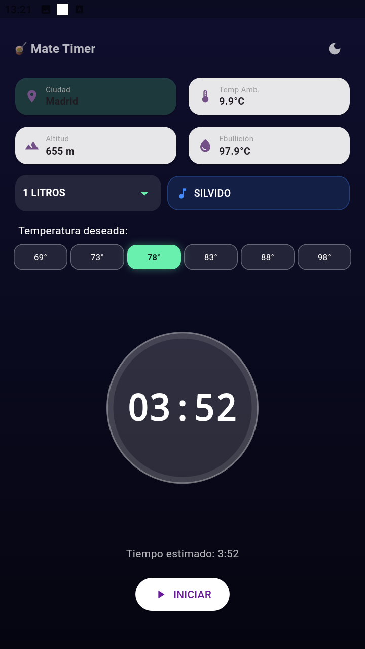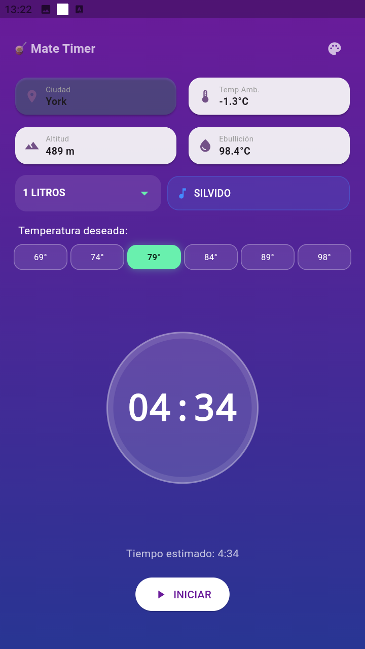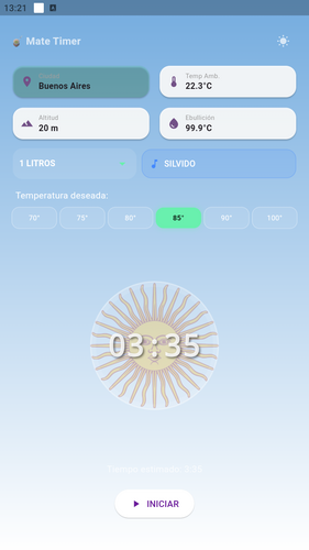 Matemp es una aplicación creada para calcular el tiempo necesario para calentar el agua del mate de forma más precisa, teniendo en cuenta variables reales como la ubicación, la altura sobre el nivel del mar y la temperatura ambiente.
